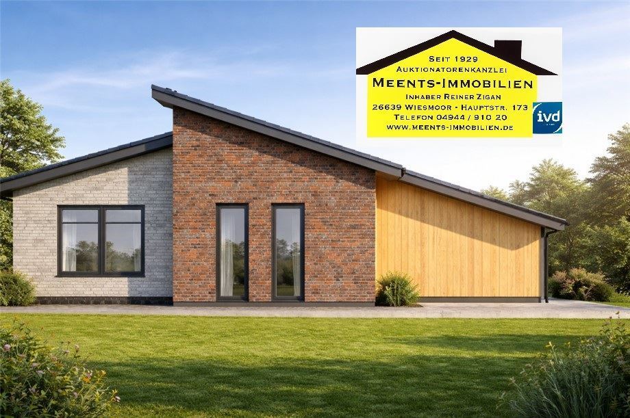 Dieses attraktive ebenerdige Einfamilienhaus im Neubau-Standard vereint moderne Bauweise mit einer besonders gefragten Wohnlage in Wiesmoor. Die Immobilie entsteht auf einem großzügigen Grundstück mit einer Größe wahlweise zwischen ca. 600 und 800 m² und bietet ideale Voraussetzungen für komfortables und nachhaltiges Wohnen.